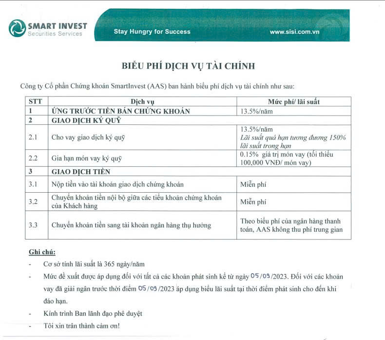 AAS THÔNG BÁO ĐIỀU CHỈNH LÃI SUẤT CHO VAY GIAO DỊCH KÝ QUỸ VÀ PHÍ ỨNG TRƯỚC TIỀN BÁN